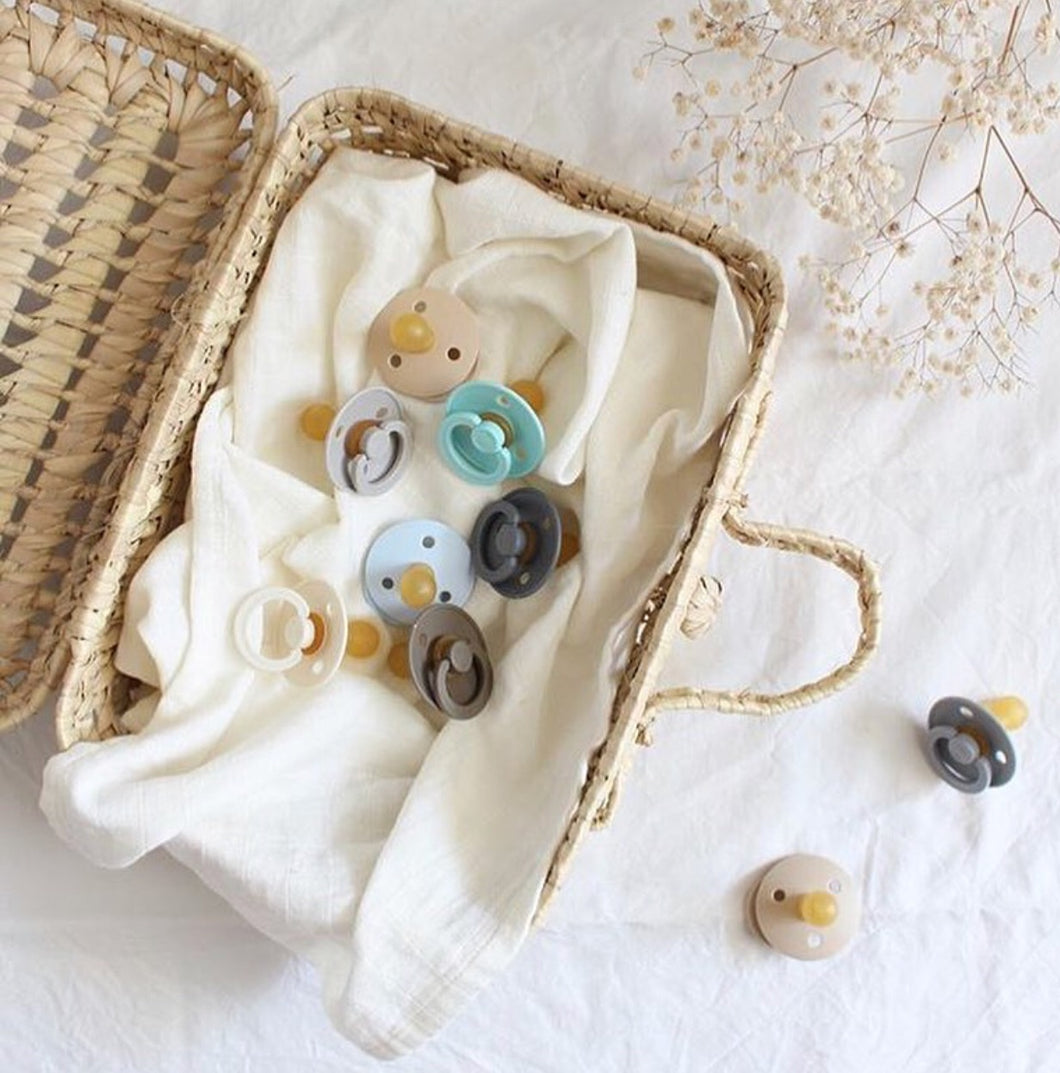 A favorite for both moms and babies for over forty years, the bibs natural rubber pacifier allows your child to self-soothe by exercising their instinctive sucking instinct in the most natural way possible, by mimicking both the shape and soft materials of mothers’ breast. Their classic appearance captures a look that’s both timeless and elegant.