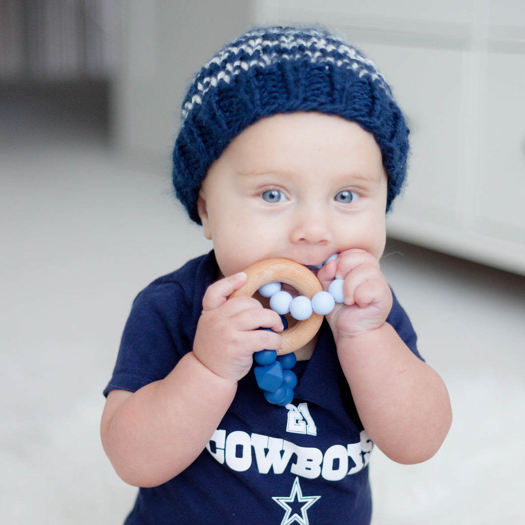 Our triple ring teethers are the perfect combo of natural wood/food grade silicone. Adorable and the perfect size for teething babies. They wood helps soothe when those emerging teeth are coming out and the soft silicone surface provides a different texture.